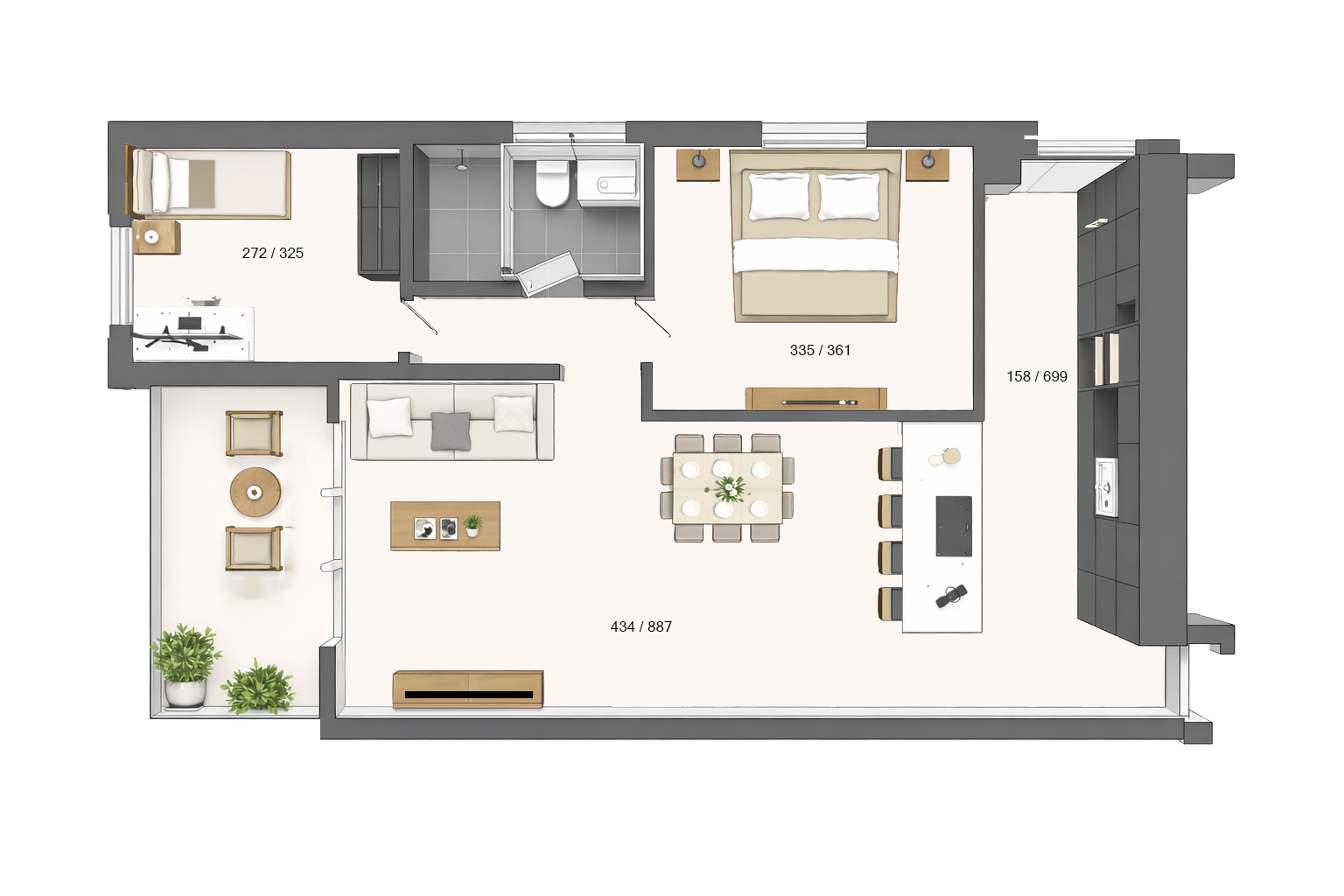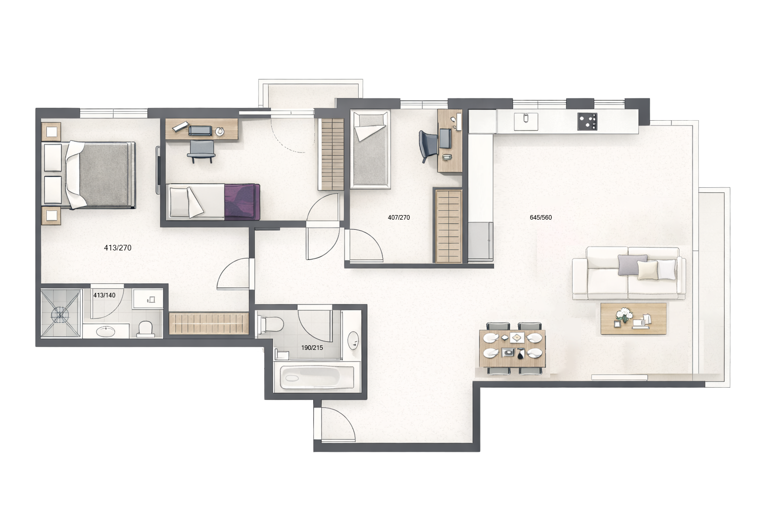 Two spacious 4-room apartments with large sun balconies